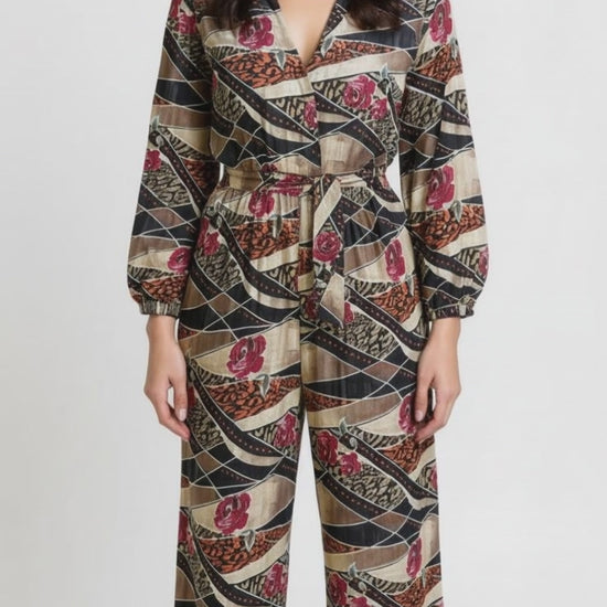 Elevate your style with this statement jumpsuit, featuring long sleeves with elastic cuffs, a comfortable elastic waistband, and a matching self-fabric belt that defines the silhouette. Designed with full-length wide-leg trousers that create an elegant flow, this piece also includes an integrated shorts lining for extra coverage and comfort. Perfect for day-to-night wear.