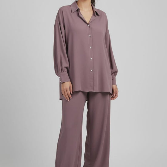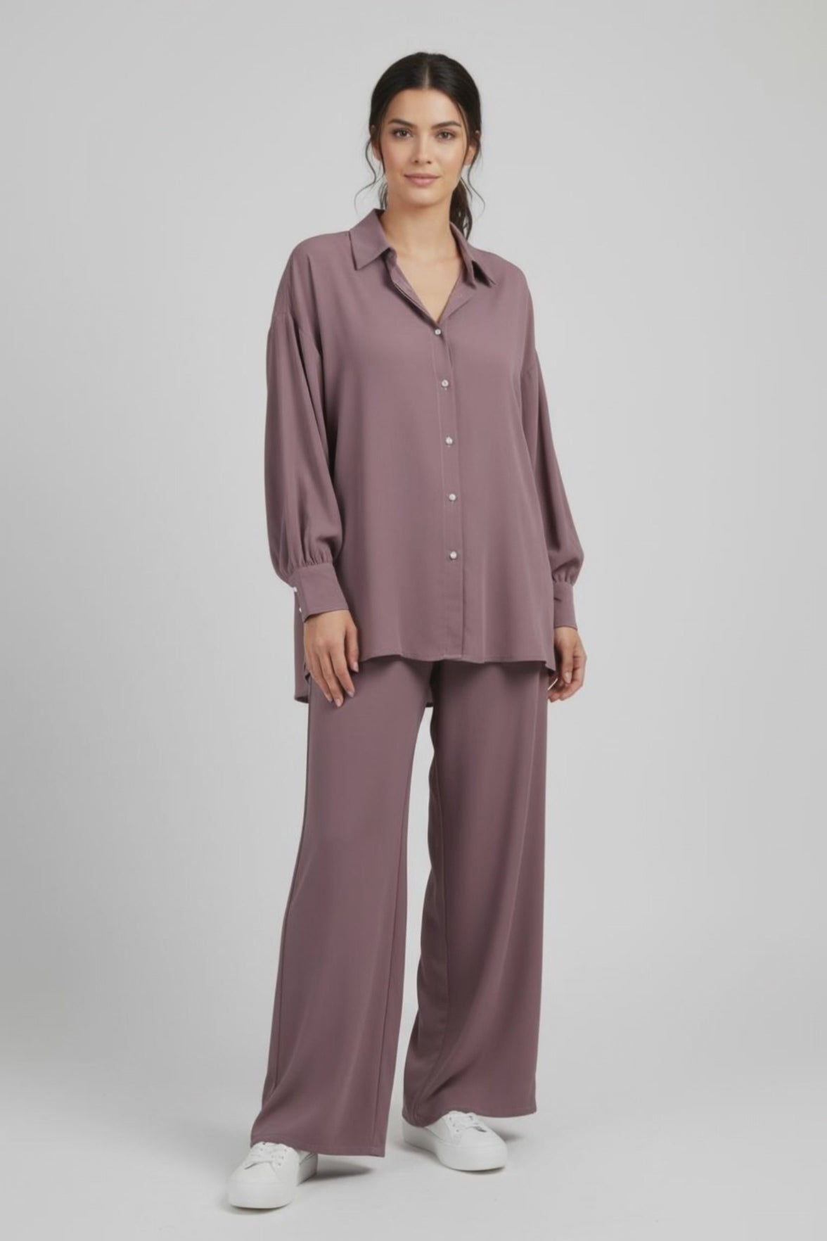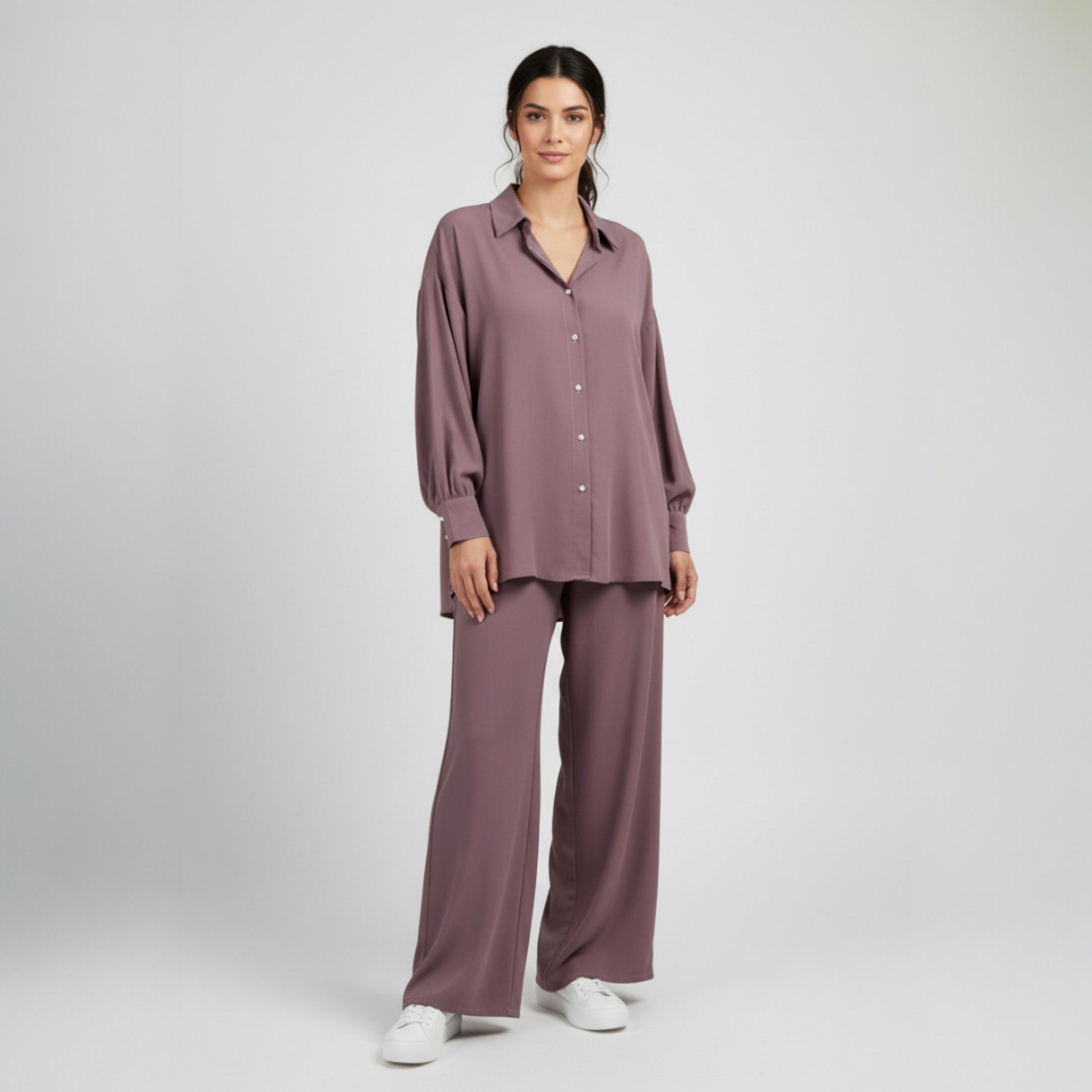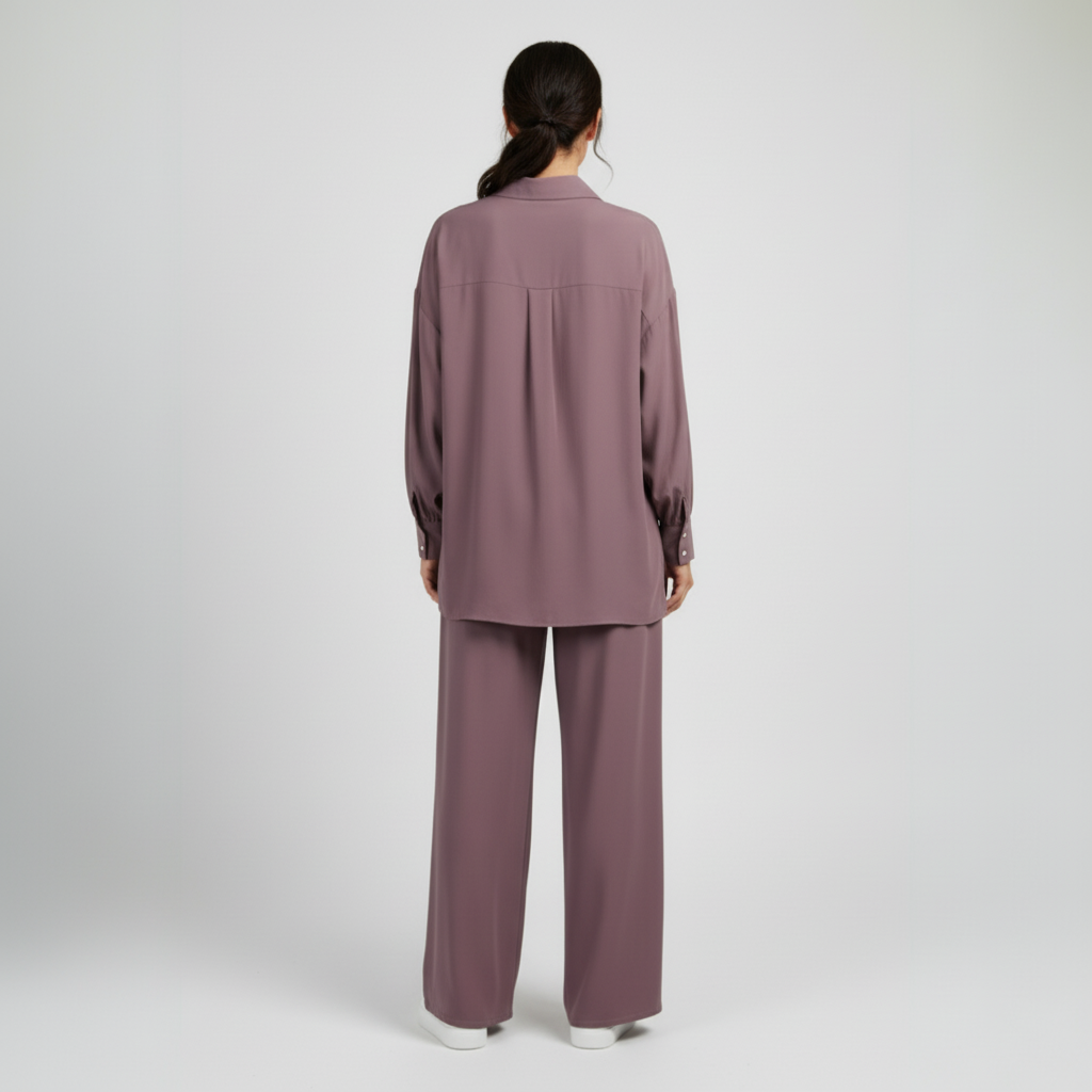 An elevated take on everyday dressing, this oversized shirt is crafted from lightweight chiffon-style polyester for an airy drape. Featuring long sleeves with buttoned cuffs, a classic collar, and front button closure, it offers both comfort and versatility. Designed to be worn loose or tucked in, it’s the perfect balance of minimal design and modern ease.